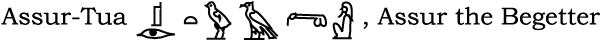Assur was the first king, the first deified ancestor, the first GodFather. Assur was "once-wise." His singular wisdom was in founding and fathering the pre-historical empire of related kingdoms. Thoth, the scribe of the gods, was the inventor of writing and numbers. The erect phallus of Assur is the number one in the "Arabic" number set.